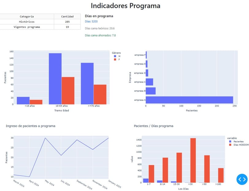 - Tasas por población (Ej: 2.5 readmisiones/100 egresos)